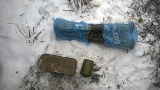 «Три снаряда калибра 120 мм, тротиловую шашку массой 230 г и бикфордов шнур правоохранители обнаружили благодаря бдительности местных жителей», - сказано в сообщении.
