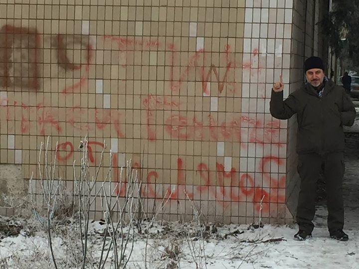 Об этом он написал на своей странице в Facebook, опубликовав также фото пропутинской надписи в городе Геническе.