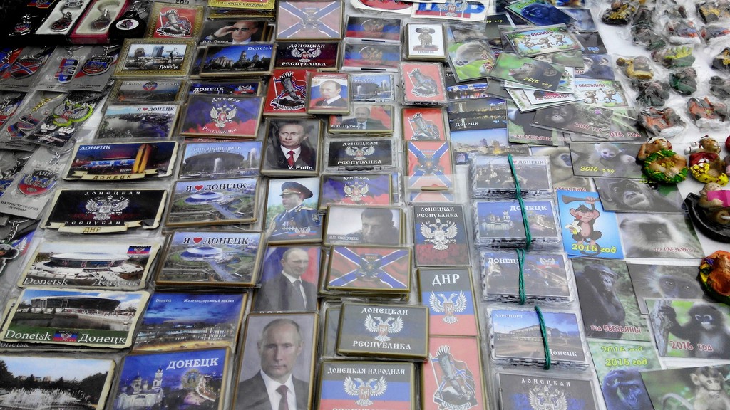 В Донецке состоялась рождественская ярмарка, на которой продавали портреты президента РФ Владимира Путина и главаря самопровозглашенной ДНР Александра Захарченко. Также дончанам продавали сувениры с символикой боевиков.