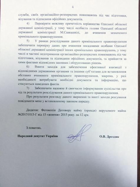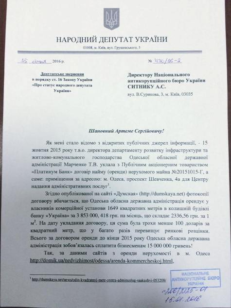 Соответствующее депутатское обращение парламентарий обнародовал на своей странице в Фейсбуке. А также опубликовал сопутствующие документы.