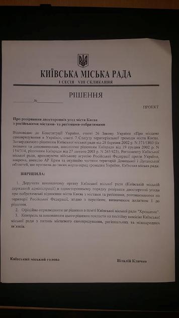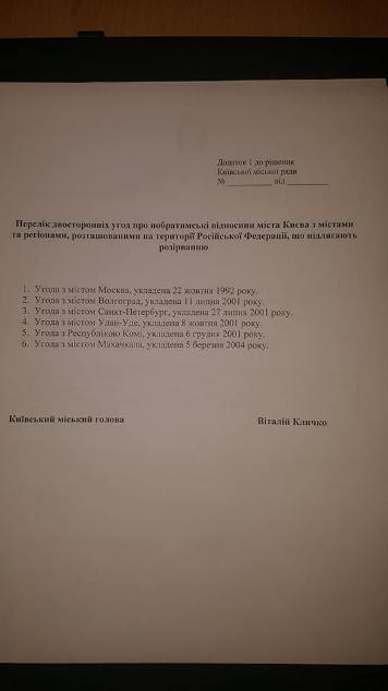 Киев готов разорвать отношения с российскими городами-побратимами (ДОКУМЕНТ)
