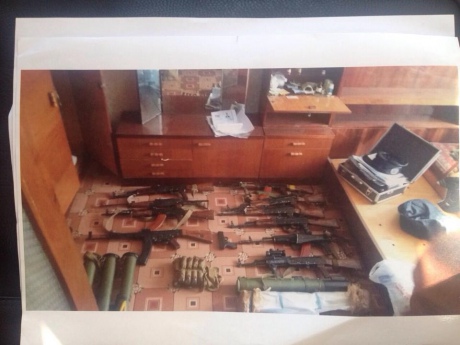 В рамках расследования были проведены обыски в Донецкой и Днепропетровской областях, в результате которых были обнаружены 9 автоматов, 5 гранатометов, 31 граната, 24 гранаты к подствольному гранатомету, 4295 патронов, тротиловые шашки и прочее.