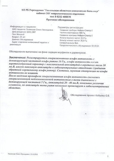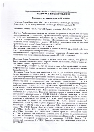 За словами Ткаченко, українські медики підтримали висновки колег із Білорусі. У Чернігові вважають, що Полянська залишиться у вегетативному стані. Відмовилися братися за лікування дівчини лікарі з Ізраїлю та Німеччини. Не тільки тому, що вважають її безнадійною, але ще й тому, що вона може не пережити перельоту. А спроба вирушити на лікування в Росію закінчилася провалом.