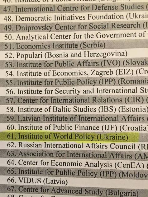 Институт мировой политики вошел в перечень ведущих неправительственных аналитических центров Центральной и Восточной Европы. Об этом написал в Фейсбуке глава правления Института Виктор Шлинчак.