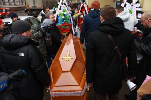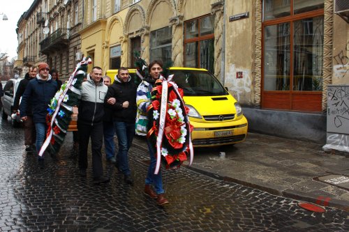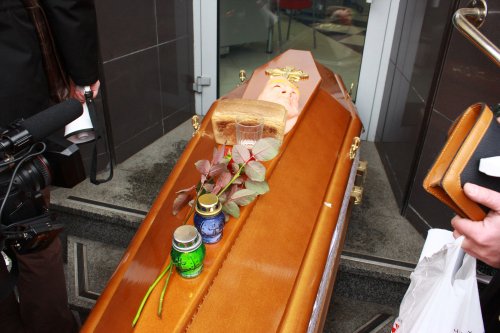 Как рассказал ZAXID.NET координатор Экономического бойкотного движения Олег Радик, гроб участники акции взяли напрокат, а венки приобрели за свой счет.