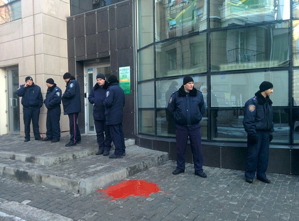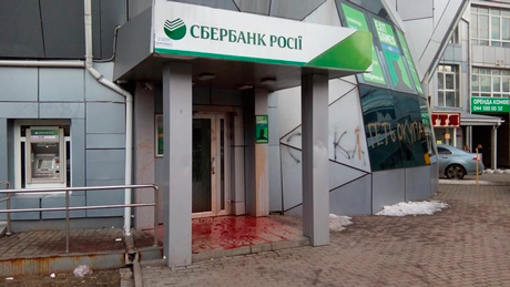 В Киеве и Харькове облили «кровью» «Сбербанк России»