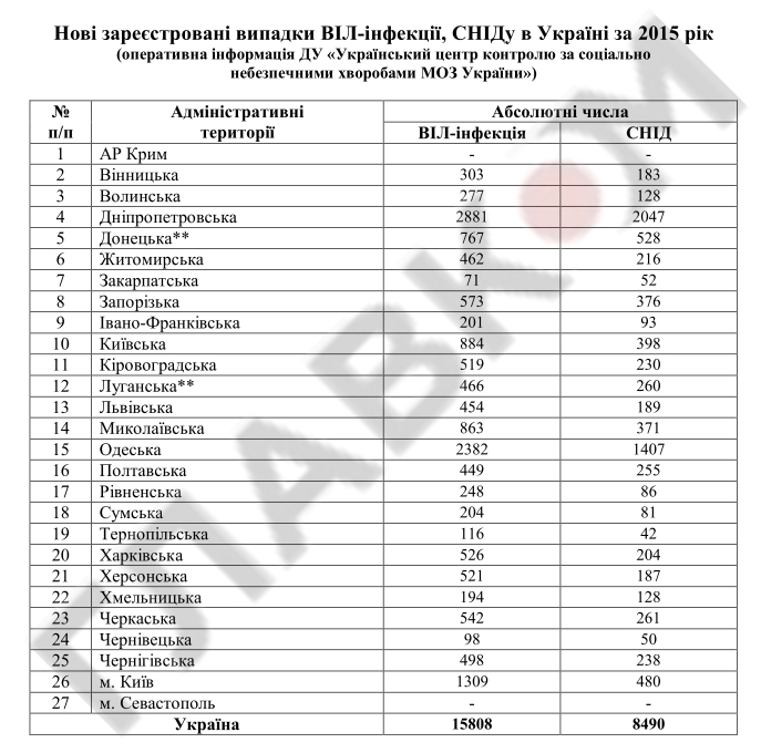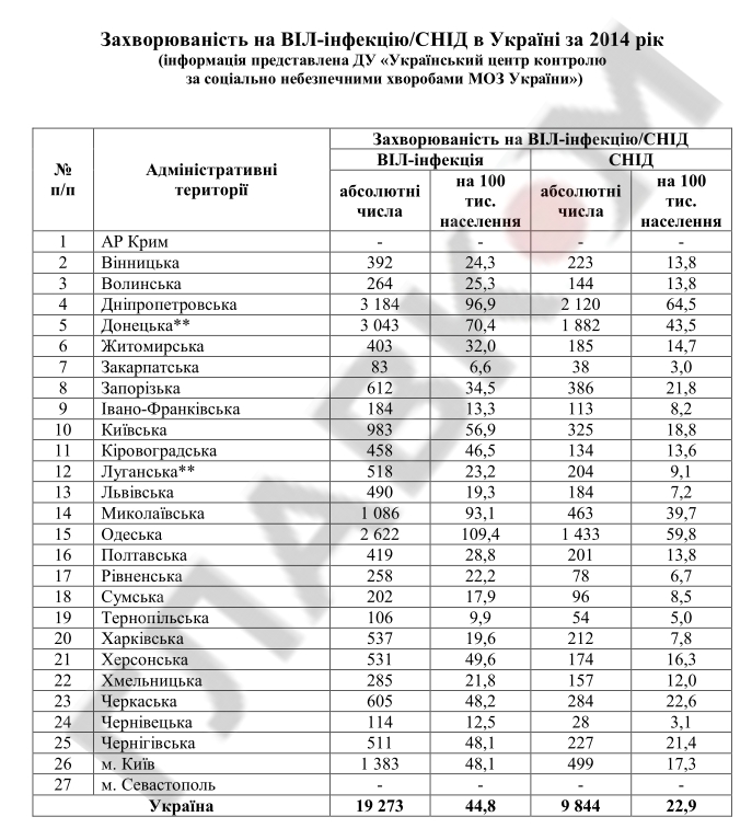 Согласно предоставленной Минздравом статистике, наибольший уровень ВИЧ/СПИДа в в юго-восточных областях Украины, которые являются русскоязычными: Днепропетровской, Донецкой и Одесской областях.
