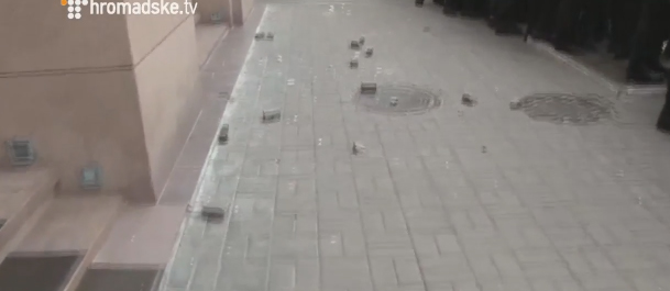 Пока Президент в Михайловском на молебне, участники Вече забросали офис Ахметова брусчаткой (ФОТО)