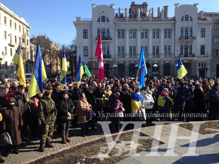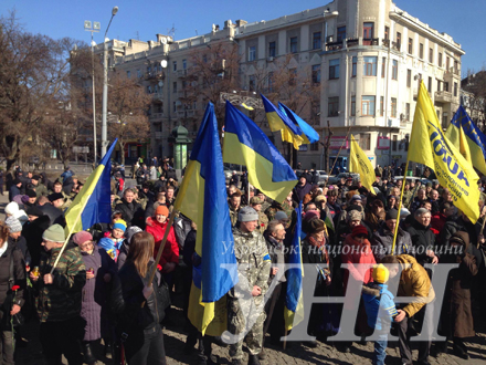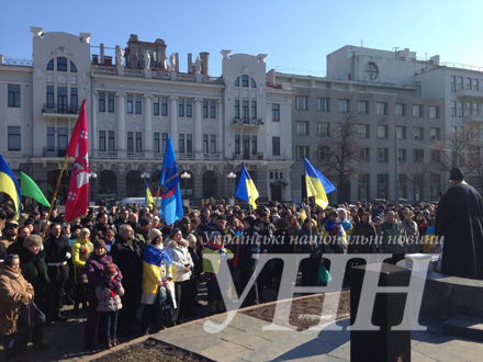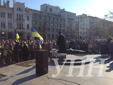 С импровизированной сцены священник читал молитву, прославляя погибших активистов Евромайдана. Позже активисты прошлись маршем к памятному знаку активистам Евромайдана, который находится на площади Свободы.