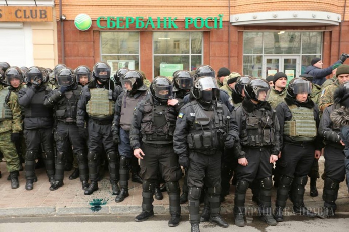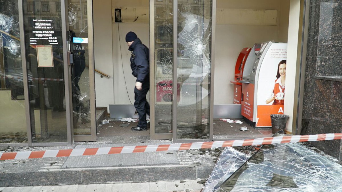 Киевская полиция расследует атаку активистов на офисы российских банков (ФОТО)