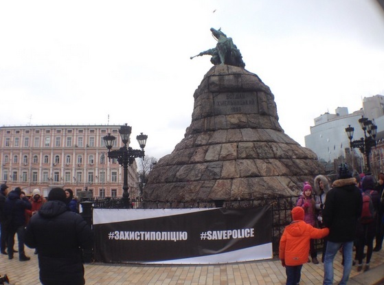 В Киеве на Софийской площади проходит митинг «Защити свою полицию». Несколько сотен граждан собрались возле памятника Богдану Хмельницкому. Люди собрались в поддержку Национальной полиции и патрульного полицейского Сергея Олейника, которого подозревают в убийстве водителя легкового автомобиля во время недавного преследования нарушителя. Люди выкрикивают "Народ, полиция вместе".
