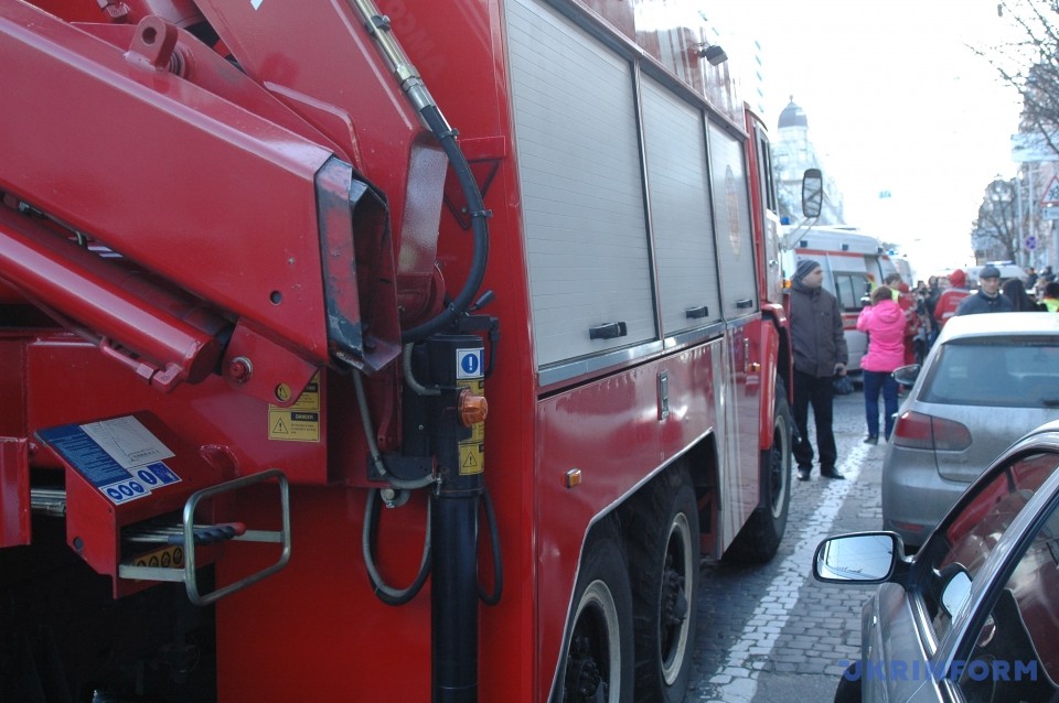 Дорожное движение на прилегающей части улицы Б.Хмельницкого перекрыто, вокруг аварийного здания выставлено оцепление.