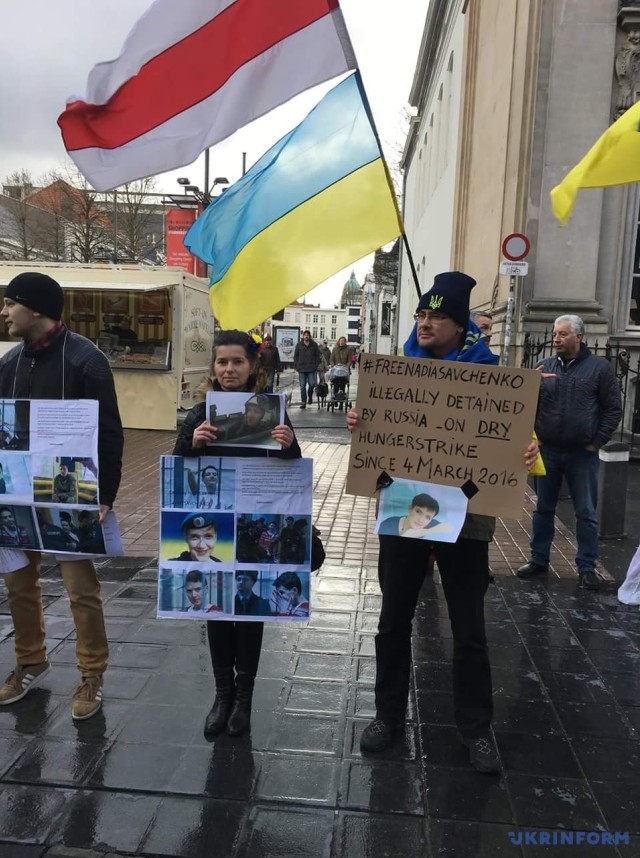 Украинцы и бельгийцы, которые приняли участие в манифестации, выразили солидарность с украинской летчицей и требовали от Кремля освобождения Надежды.