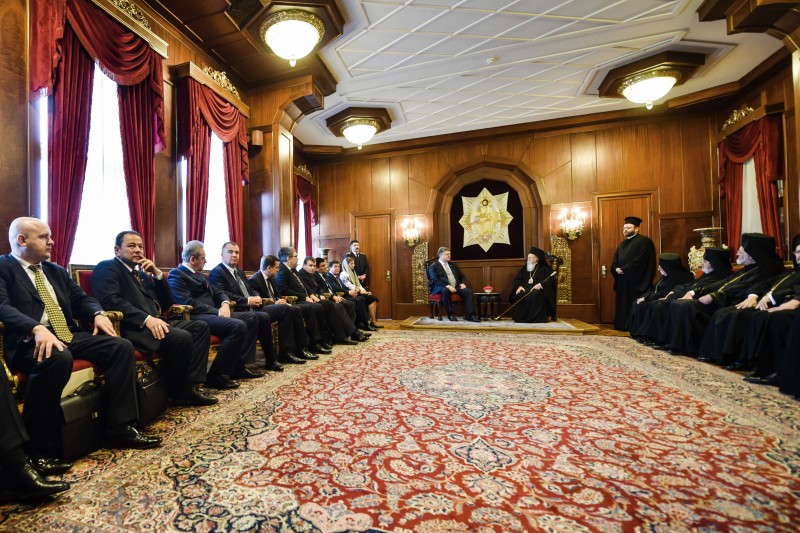 Встреча состоялась в Тронном зале Вселенского Патриархата в Стамбуле. Главу государства сопровождала его супруга Марина.