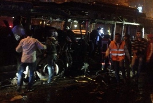 Как сообщают очевидцы, взрыв произошел в месте большого скопления людей. Полностью сгорел один муниципальный автобус, горят несколько автомобилей. Также сообщается о многочисленных раненых. Полиция оцепила место происшествия, в район прибывают машины скорой помощи, пожарные борются с огнем.
