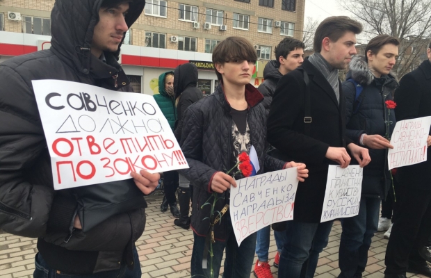 Молодые люди в разговоре с корреспондентом УНИАН заявили, что они прибыли под здание суда «из разных районов Ростовской области, чтобы подержать российское правосудие и российское правительство». Большинство опрошенных уверены в обвинительном приговоре Савченко, которое, по их мнению, является справедливым.