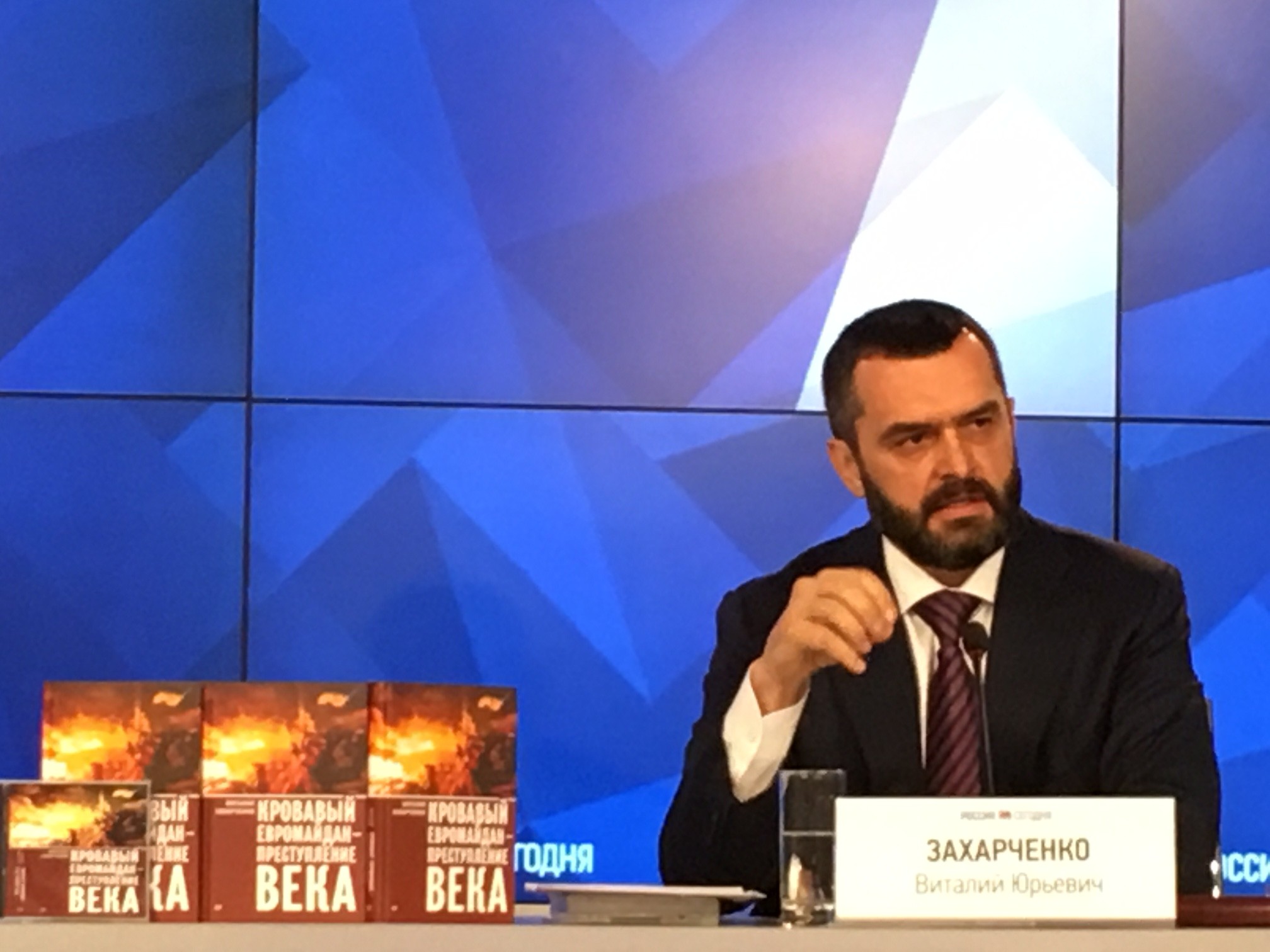 Беглый экс-глава МВД Украины Виталий Захарченко в Москве в окружении охраны презентовал книгу «Кровавый Майдан - преступление века».