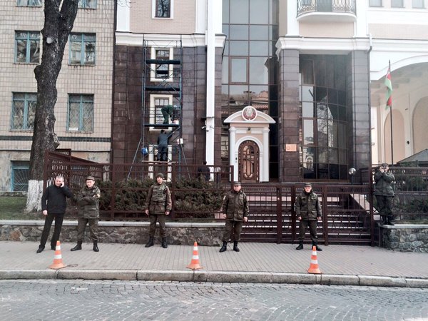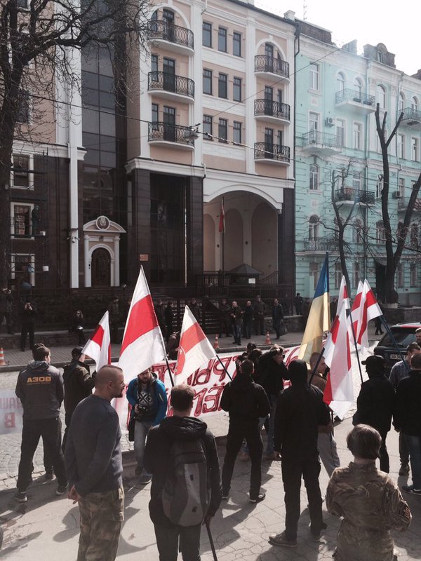 В Киеве под посольством Беларуси митингуют добровольцы (ФОТО)