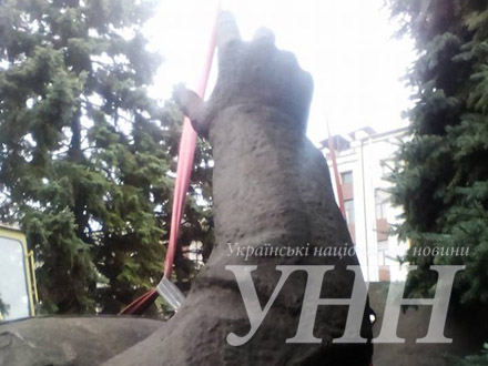 На месте работали три единицы техники. В течение 20 минут 15 тонного бронзового Орджоникидзе демонтировали и вывезли.