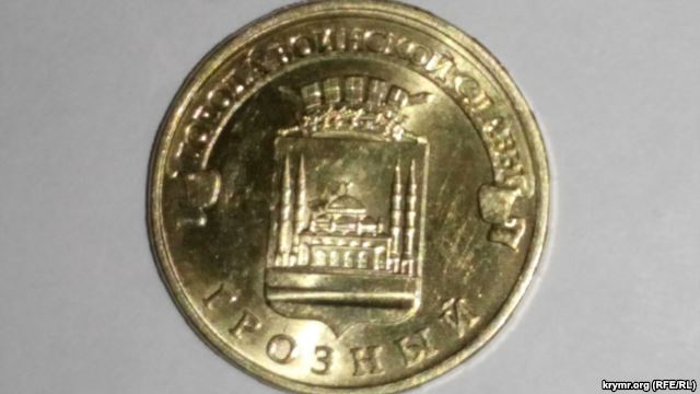 В оккупированном Россией Крыму появились в обращении юбилейные монеты, посвященные столице Чечни – Грозному. Десятирублевые монеты можно получить на сдачу в маршрутке или магазине.