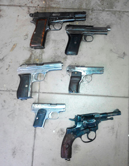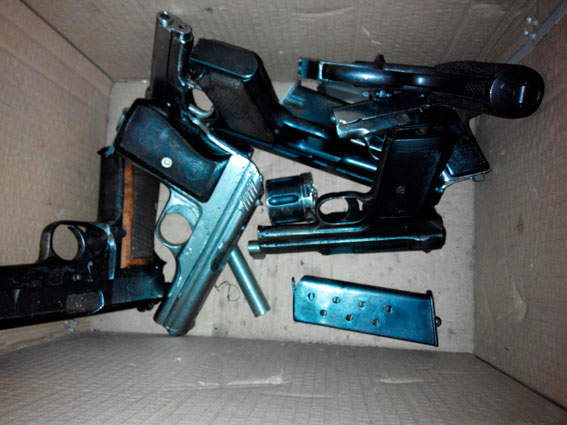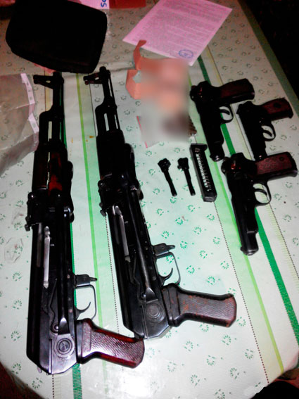 Во время обыска правоохранители изъяли 3 автомата Калашникова, 2 пистолета Стечкина, пистолет Макарова, пистолет Маузер, пистолет CZ-29, пистолет Браунинг, револьвер системы Наган и пистолет Тульский Коровин.