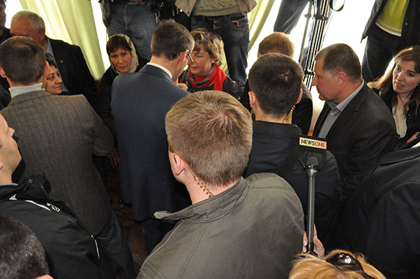 После столкновения первый заместитель главы АП около 20 минут общался с активистами и пообещал в течение месяца разобраться с выставленными требованиями и претензиями.