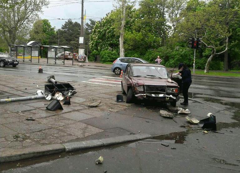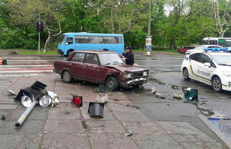 Как сообщает управление патрульной полиции Одессы, около 13:00 по проспекту Шевченко со стороны площади 10 Апреля, двигался автомобиль ВАЗ-2107, водитель которого у Дворца спорта не справился с управлением и совершил выезд на тротуар, наезд на четырех пешеходов и светофор.