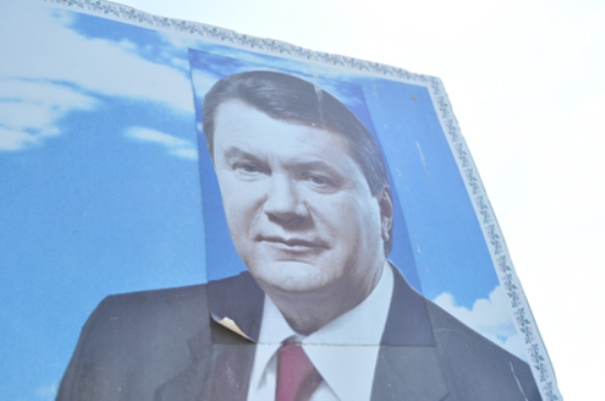 Похоже, что на лицо прежнего Главнокомандующего Виктора Ющенко наклеили фотографию Виктора Януковича. И на плакате теперь голова Виктора Федоровича, а туловище Виктора Андреевича. А платочек в верхнем кармашке костюма выдает привычку именно прежнего Президента.