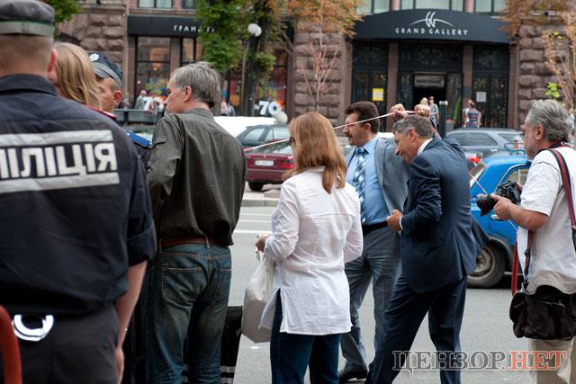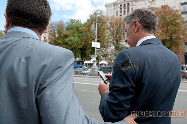 Как сообщает Цензор.Нет, направляясь к машине, министр проходил мимо толпы сторонников экс-премьер-министра Юлии Тимошенко, когда в него швырнули грязью, испачкав пиджак.