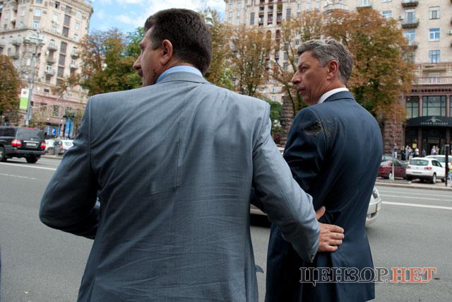 В министра энергетики и угольной промышленности Юрия Бойко бросили грязью из толпы возле Печерского районного суда Киева.