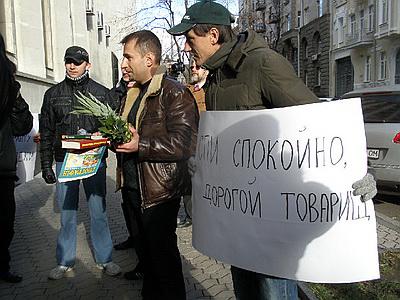 Активисты развернули плакаты «Спи спокойно, дорогой товарищ», «Гарантируем Гаранту гарантии безопасности», сообщает Цензор.Нет со ссылкой на NR2.
