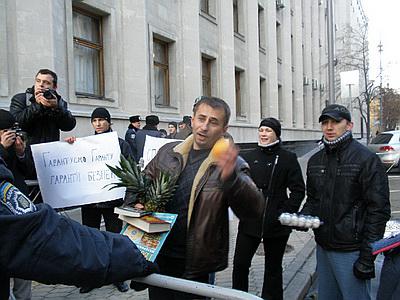 На требования, а потом просьбы пропустить их к входным дверям здания Администрации Президента был получен категорический отказ усиленного наряда киевской милиции. Не удовлетворившись таким ответом, оранжисты пытались прорваться через заслон, но были изгнаны. На такое милицейское «беззаконие» активисты ответили метанием апельсинов в сторону Администрации.