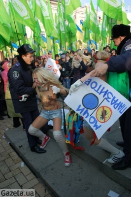 По информации движения, после окончания акции активисток задержала милиция и отправила в Шевченковское районное отделение.