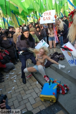 FEMENистки возле Яценюка требовали народную революцию (ФОТО)