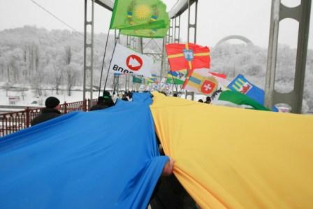 Общественные организации в День Соборности провели акцию, в ходе которой общественные активисты соединили берега Днепра 200-метровым флагом Украины. Также в ходе акции был подписан Манифест гражданской солидарности. К участию в мероприятии приглашены и представители оппозиционных сил. 19 января всем участникам КОД, а также «УДАРу» Виталия Кличко и «Гражданской позиции» Анатолия Гриценко были направлены письма с предложением присоединиться к акции и подписать Манифест гражданской солидарности. Инициаторами проведения Гражданского Дня соборности «Украина единая» выступили общественные объединения, в частности Гражданское движение «Вперед!», Всеукраинский комитет «Наступ», общественная организация «Предприниматели Подолья». Об участии в акции заявили организации со всей Украины, в частности Союз перевозчиков, Ассоциация фермеров Украины, общественная организация «Дети войны», представители чернобыльского движения и казачества.