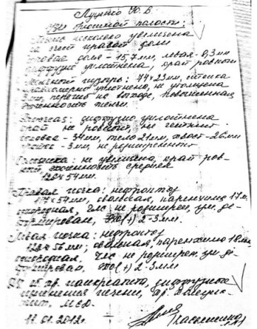 Народный депутат Владимир Арьев на своей странице в Facebook выложил последние результаты обследования УЗИ Юрия Луценко. «Недавнее УЗИ Юры. У него очень большие проблемы - врачи могут оценить», - прокомментировал Арьев этот документ.