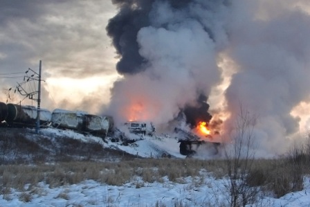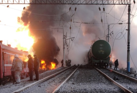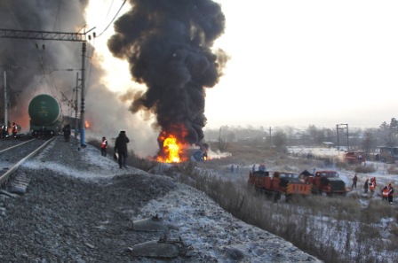 Семнадцать цистерн грузового состава из 68 емкостей с сырой нефтью сошли с рельсов во вторник утром по местному времени на 8033-м километре Забайкальской железной дороги на перегоне Бурея – Домикан (Амурская область, Россия) и 13 из них загорелись.