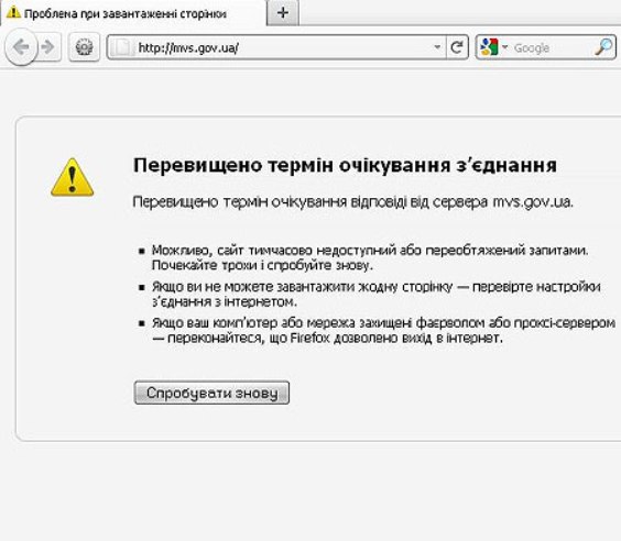 Сайт Министерства внутренних дел недоступен. Соответствующее сообщение высвечивается на запрос адреса «mvs.gov.ua».