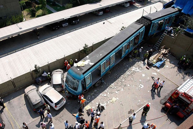 В Сантьяго поезд метро на высокой скорости врезался в жилой дом. Как сообщает The Sunday Morning Herald, в чилийской столице поезд без пассажиров внезапно сошел с рельсов, и буквально въехал в парковку, детскую площадку и прилегающее к ним здание.