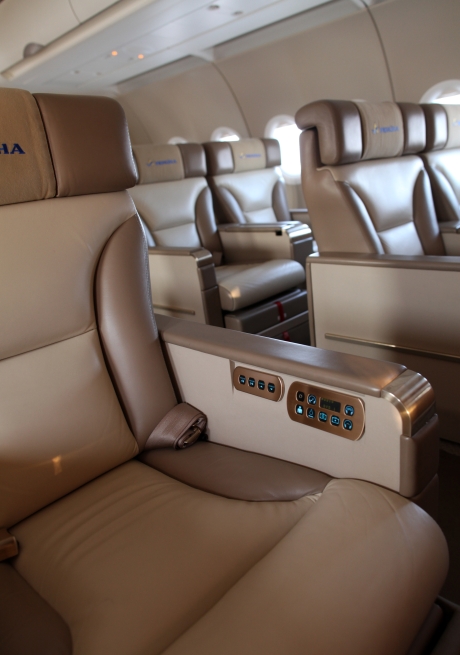 Интерьер самолета выдержан в бежевых тонах. Все металлические детали салона выполнены из алюминия, часть из них - с желтым напылением. Драгоценные металлы не использовались.