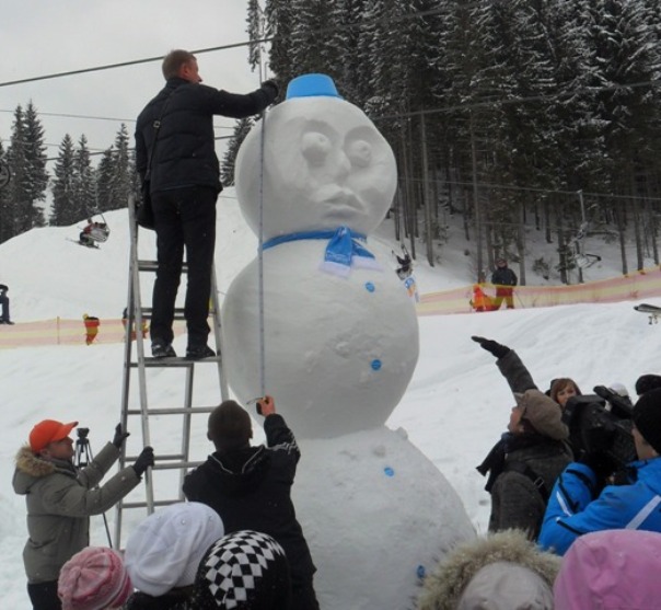 На событии присутствовали представители Книги рекордов Украины, которые зафиксировали высоту снеговика - 4,85 м, длину самой большой снежной фигуры 5,2 м.