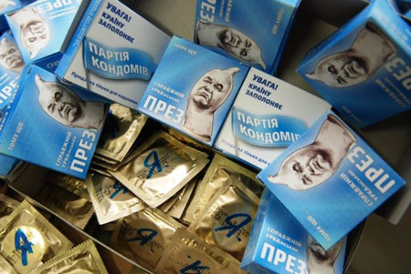 На Майдане раздавали презервативы с Януковичем (фото)