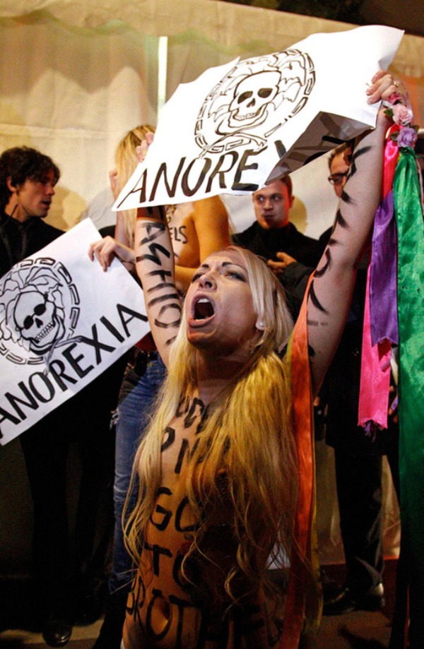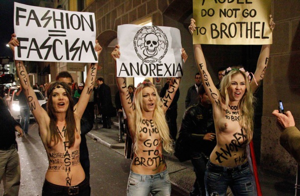 По их мнению, неудавшиеся манекенщицы, которых намного больше, чем удавшихся, часто становятся клиентами психиатрических клиник или работницами секс-индустрии. Покупатели дизайнерской одежды, по мнению FEMENисток, такие же жертвы и «подопытные кролики для маркетинговых отделов модных брендов».