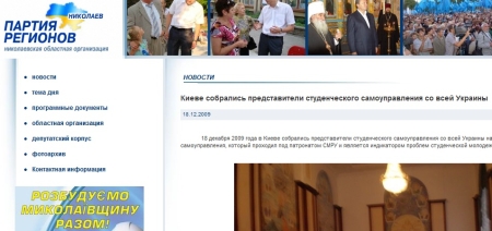 Об этом можно узнать на официальном сайте Николаевской областной организации Партии регионов в публикации за 18 декабря 2009 года.