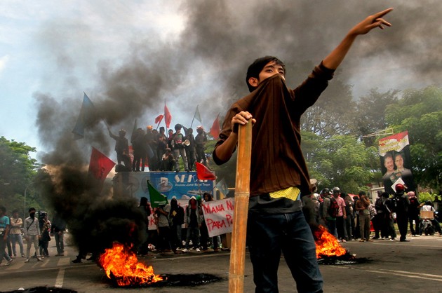 Индонезийские студенты жгут покрышки за дешевый бензин (Фоторепортаж)