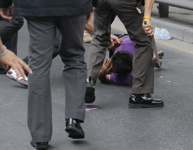 Душераздирающую сцену могли наблюдать сегодня жители Бангкока: 30-летний мужчина посреди оживленной трассы удерживал в заложницах женщину, угрожая ей ножом. После шести часов переговоров полиция приняла решение применить электрошок.