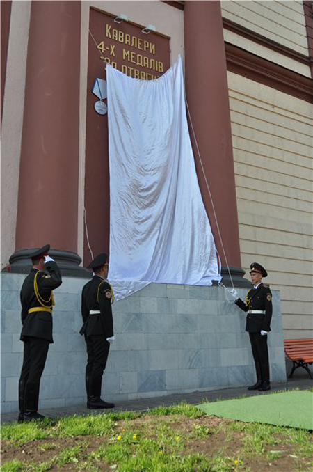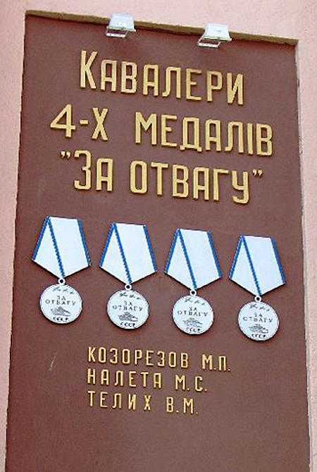 Как сообщает издание «Храбро», на стене написано «Кавалери 4-х медалів «За отвагу».
