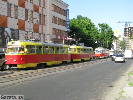 23 мая около 18 часов на улице Глыбочицкой, что на Лукьяновке в Киеве, образовалась большая тянучка из трамваев.