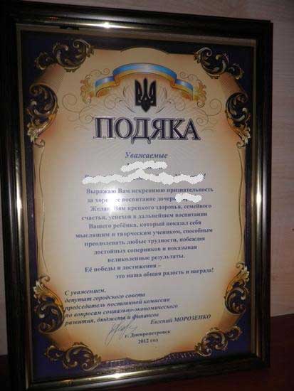 Родителям стипендиатов вручали благодарности, оформленные в рамочки, также за подписью депутата горсовета, главы бюджетной комиссии Евгения Морозенко.