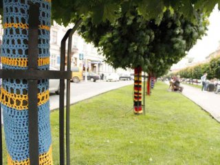 Во Львове деревья, растущие на пр. Шевченко в центре города, обвязали вязанными флагами стран-участниц Евро-2012. Кленовая аллея была украшена по инициативе управления культуры Львовского городского совета.